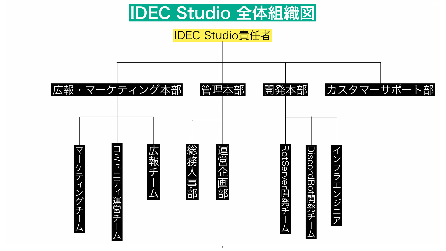 IDEC Studioでは、ほとんどの役職を希望に応じて選ぶことができます。(複数選択も可です。)部長などの主要ポジションについては、人事部や責任者が適正を考慮して決定します。自分の得意分野や興味に合わせて役職を選び、スタジオ内で想像力を最大限に発揮できる環境です。