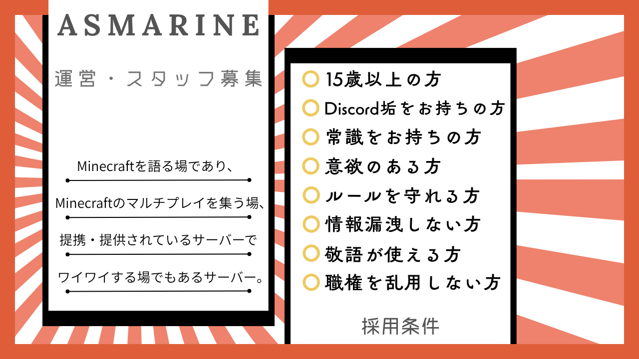 運営(Minecraft) | Minecraftサーバーの整備、開発、運営をして頂くお仕事です。 |